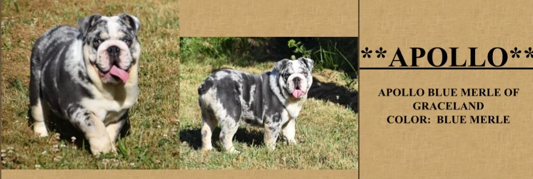 The Sire of the current litter at SI Bully Ranch is Apollo Blue Merle of Graceland, his color is Blue Merle.
